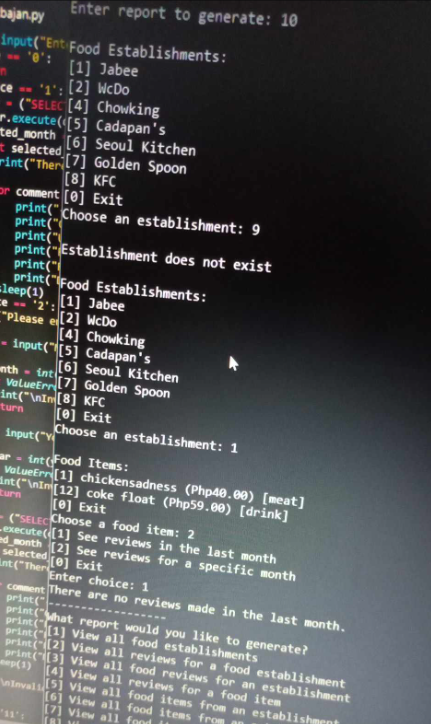 food item and review information system